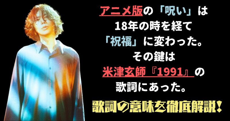 米津さん自身、この楽曲が映画のために書き下ろされたものであると同時に、「わたしの半生を振り返るような曲にもなってしまい、映画のキーワードでもあるところの1991というタイトルにさせてもらいました」とコメントしている。