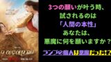 おそらく、その人間は欲望に抗えず、すぐに一つ目の利己的な願いを口にし、イブリースの思う壺だっただろう。