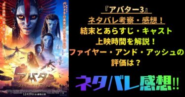 映画『アバター:ファイヤー・アンド・アッシュ』完全解説!ネタバレあらすじ・キャスト・評価からラスト考察まで総まとめこんにちは!YOSHIKIです!ついに、この時がやって来ました。世界中の映画館を“青一色”に染め上げた、あの伝説のサーガ。ジェームズ・キャメロン監督が放つ最新作、『アバター:ファイヤー・アンド・アッシュ』が、いよいよ2025年12月19日より日米同時公開です!!前作『ウェイ・オブ・ウォーター』では、美しすぎる「海」の世界に圧倒され、「もうこれ以上の映像体験はないだろう」と思いましたよね?でも、キャメロン監督は軽々とそのハードルを超えてきました。今回のテーマは、タイトル通り「火(Fire)」と「灰(Ash)」。「ナヴィ族は自然を愛する平和な種族」そんな僕たちの思い込みをぶち壊す、攻撃的で凶悪な「火の部族」が登場します!青い海から、燃え盛るマグマと灰の世界へ。物語はかつてないほどダークに、そして激しく加速していきます。上映時間は驚異の3時間17分。これはもはや映画鑑賞ではありません。「パンドラへの短期留学」です。(パスポートはいりませんが、覚悟は必要です!)サリー家の絆は守られ...