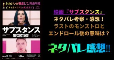 映画『サブスタンス』ネタバレ考察・感想!ラストのモンストロとエンドロール後の意味は?モンスター・スー・フレッド・キャストまで完全解説【Prime Video】